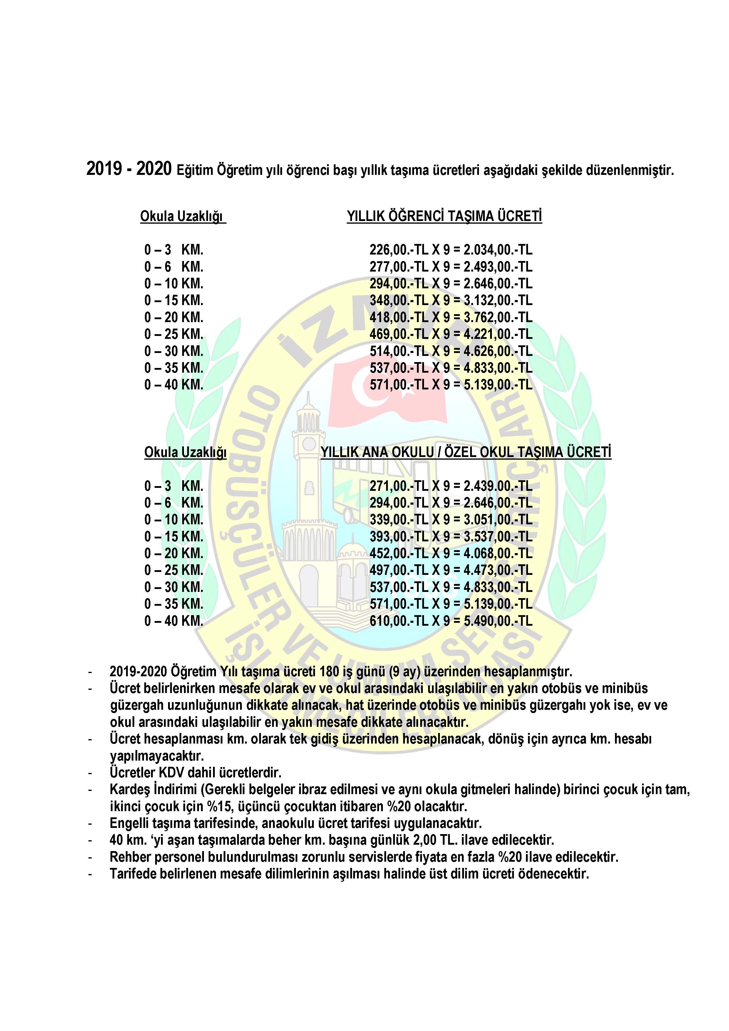 Arşiv Bilgi Bankası 2019-2020 Fiyat Tarifesi 28 Ağustos 201915 Aralık 2020 HBB Paylaş : 2019-2020 Eğitim Öğretim yılı öğrenci başı yıllık taşıma ücretleri aşağıdaki belirtildiği gibidir;