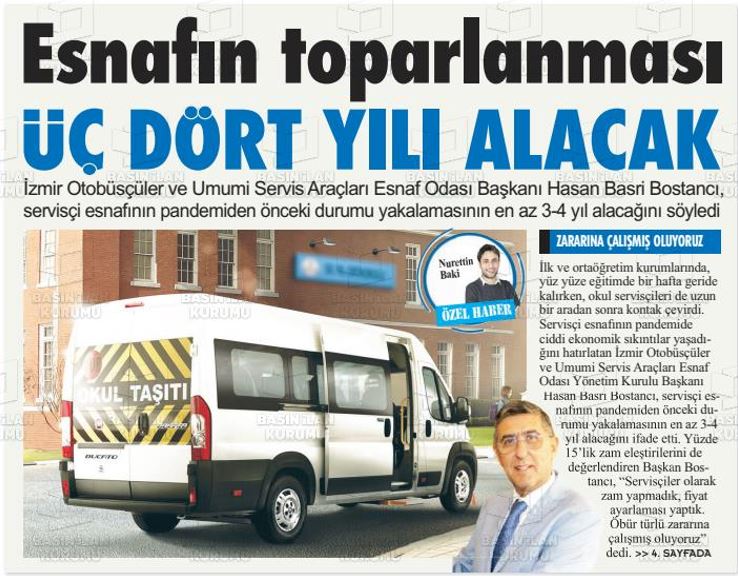 İlk ve ortaöğretim kurumlarında, yüz yüze eğitimde bir hafta geride kalırken, okul servisçileri de uzun bir aradan sonra kontak çevirdi. Servisçi esnafının pandemide ciddi ekonomik sıkıntılar yaşadığını hatırlatan İzmir Otobüsçüler ve Umumi Servis Araçları Esnaf Odası Yönetim Kurulu Başkanı Hasan Basri Bostancı, servisçi esnafının kendine gelmesi, pandemi önceki durumu yakalamasının en 3-4 yıl alacağını söyledi.