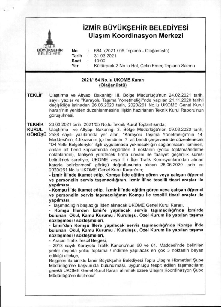 UKOME Kararları ve Genelgeler