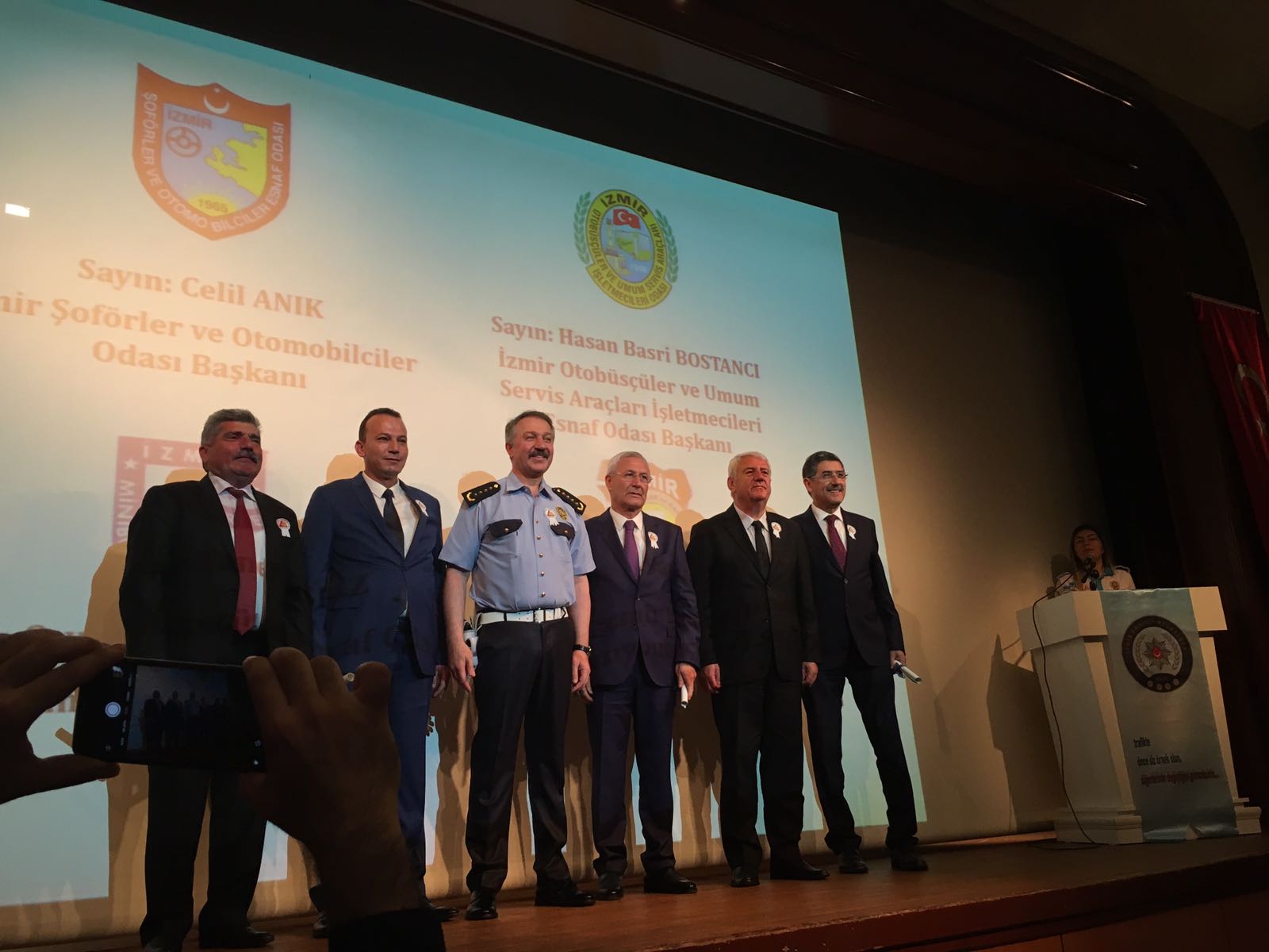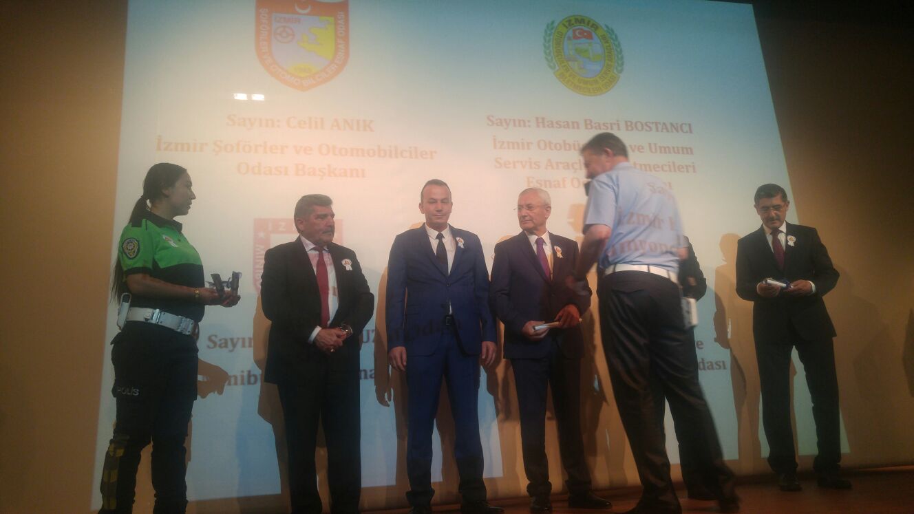 Ayrıca törene katılan İzmir Şoför Odaları (Servisçiler/Şoförler/Kamyoncular/Minibüsçüler) Başkanlarına da İzmir İl Emniyet Müdürü Sn.Hüseyin AŞKIN ve İESOB Başkanı Sn.Zekeriya MUTLU tarafından belgeleri taktim edildi.
