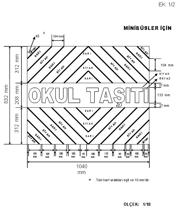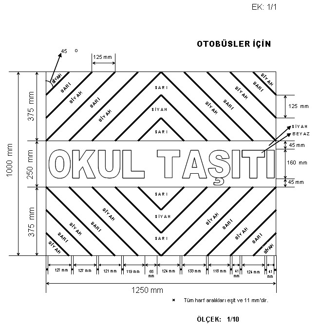 a) Okul servis araçlarının arkasında “OKUL TAŞITI” yazısını kapsayan numunesine uygun renk, ebat ve şekilde reflektif bir kuşak bulundurulmalıdır. (EK: 1/1, EK: 1/2)