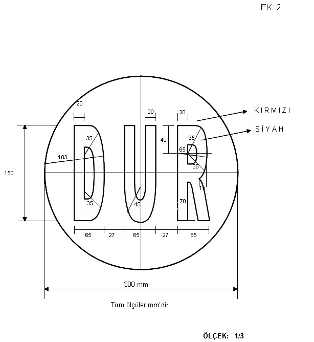 b) Okul servis aracının arkasında, öğrencilerin iniş ve binişleri sırasında yakılmak üzere en az 30 cm çapında kırmızı ışık veren bir lamba bulunmalı ve bu lambanın yakılması halinde üzerinde siyah renkte büyük harflerle “DUR” yazısı okunacak şekilde tesis edilmiş olmalı, lambanın yakılıp söndürülmesi tertibatı fren lambaları ile ayrı olmalıdır (EK:2)