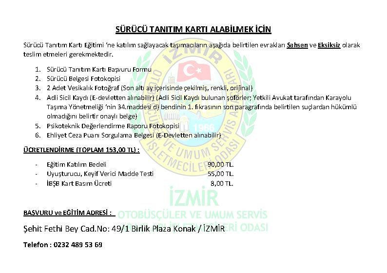 SÜRÜCÜ TANITIM KARTI ALABİLMEK İÇİN