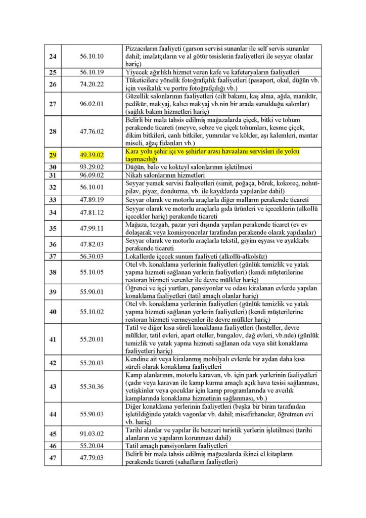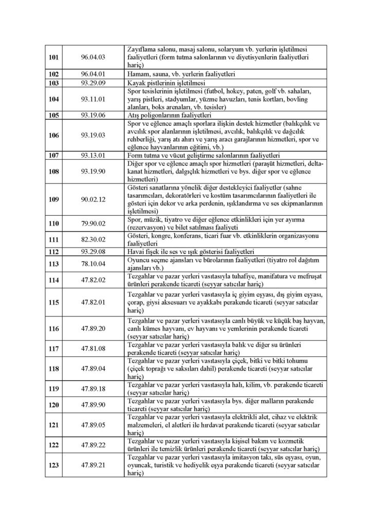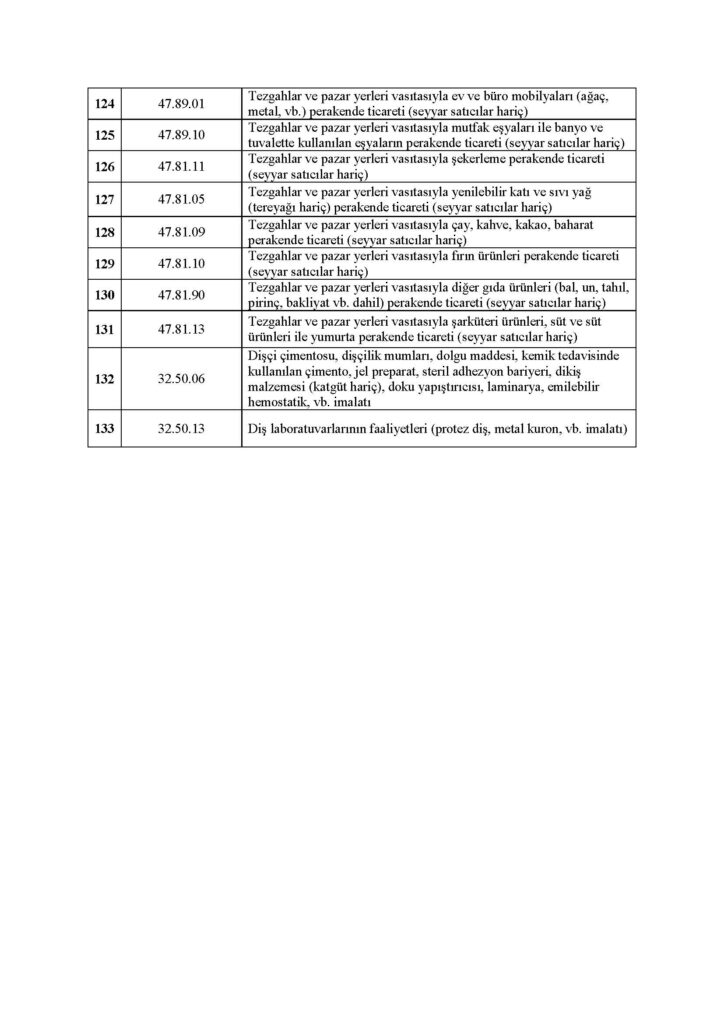 Buna göre, ticari kazançları basit usulde vergilendirilenler ile vergiden muaf esnafın yanında esas faaliyetleri dolayısıyla hibe desteğinden yararlanabilecek olan esnaf ve sanatkârlarımız ile gerçek kişi tacirlerimizin ekonomik faaliyet tanımları liste halinde ekte kamuoyunun bilgisine sunulmuştur.