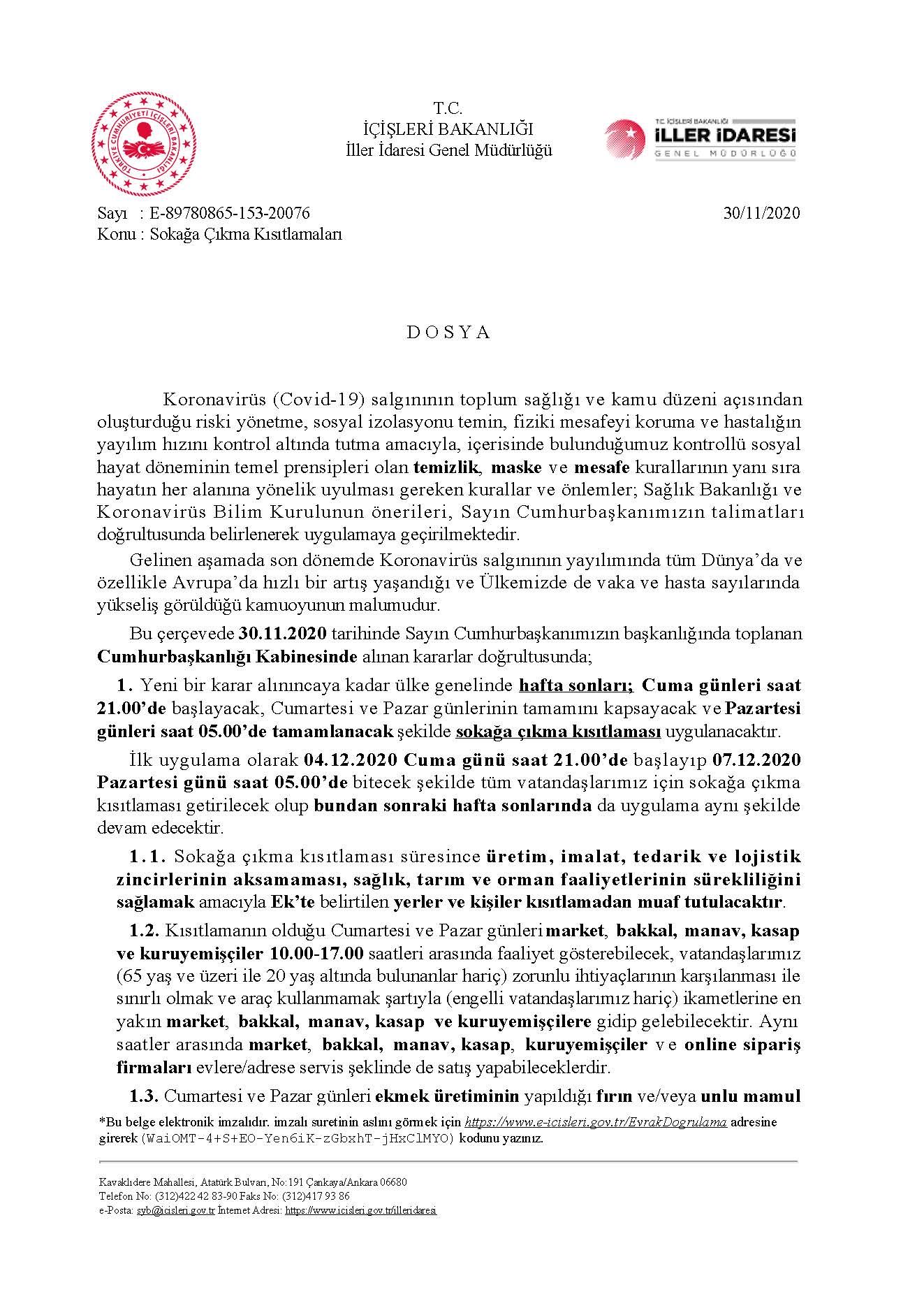 Duyurular Yeni Koronavirüs Tedbirleri 1 Aralık 202012 Mayıs 2021 HBB Paylaş : İçişleri Bakanlığı tarafından yayınlanan Koronavirüs ile Mücadele Kapsamında Sokağa Çıkma Kısıtlamaları – Yeni Kısıtlama ve Tedbirler Genelgeleri